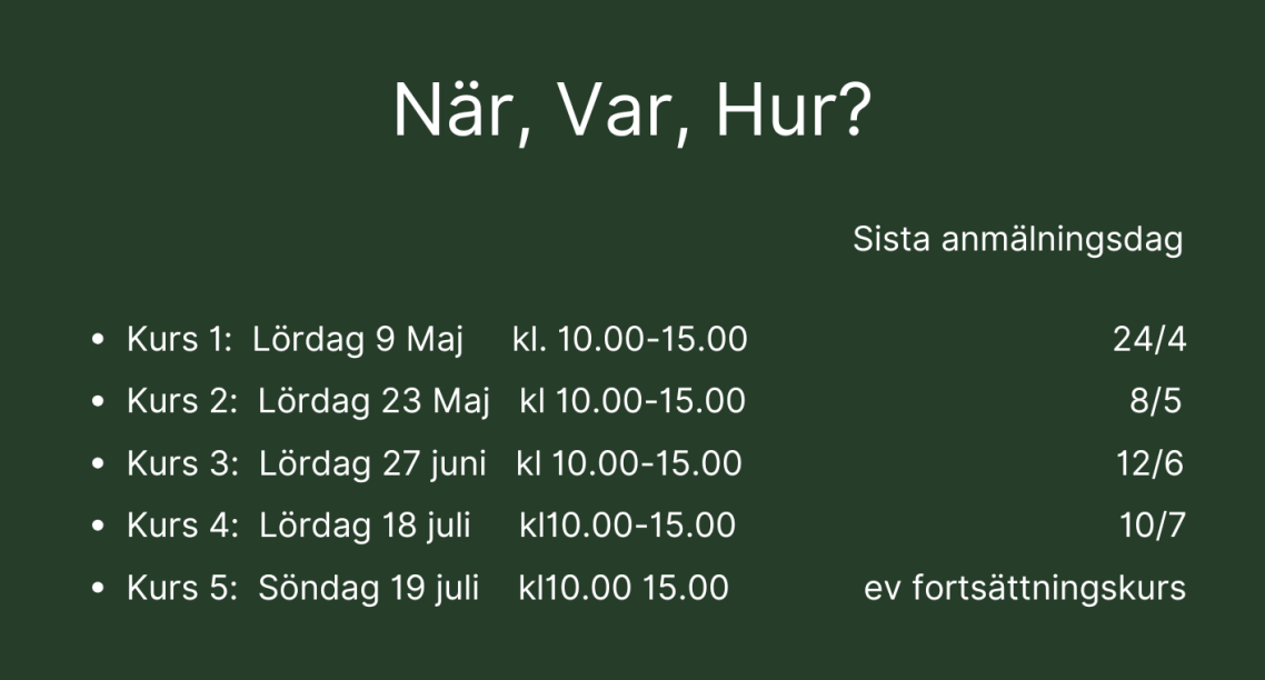 Om du vill anmäla dig till en kurs, om du vill veta mer, boka en egen lektion eller anlita mig till ett evenemang.